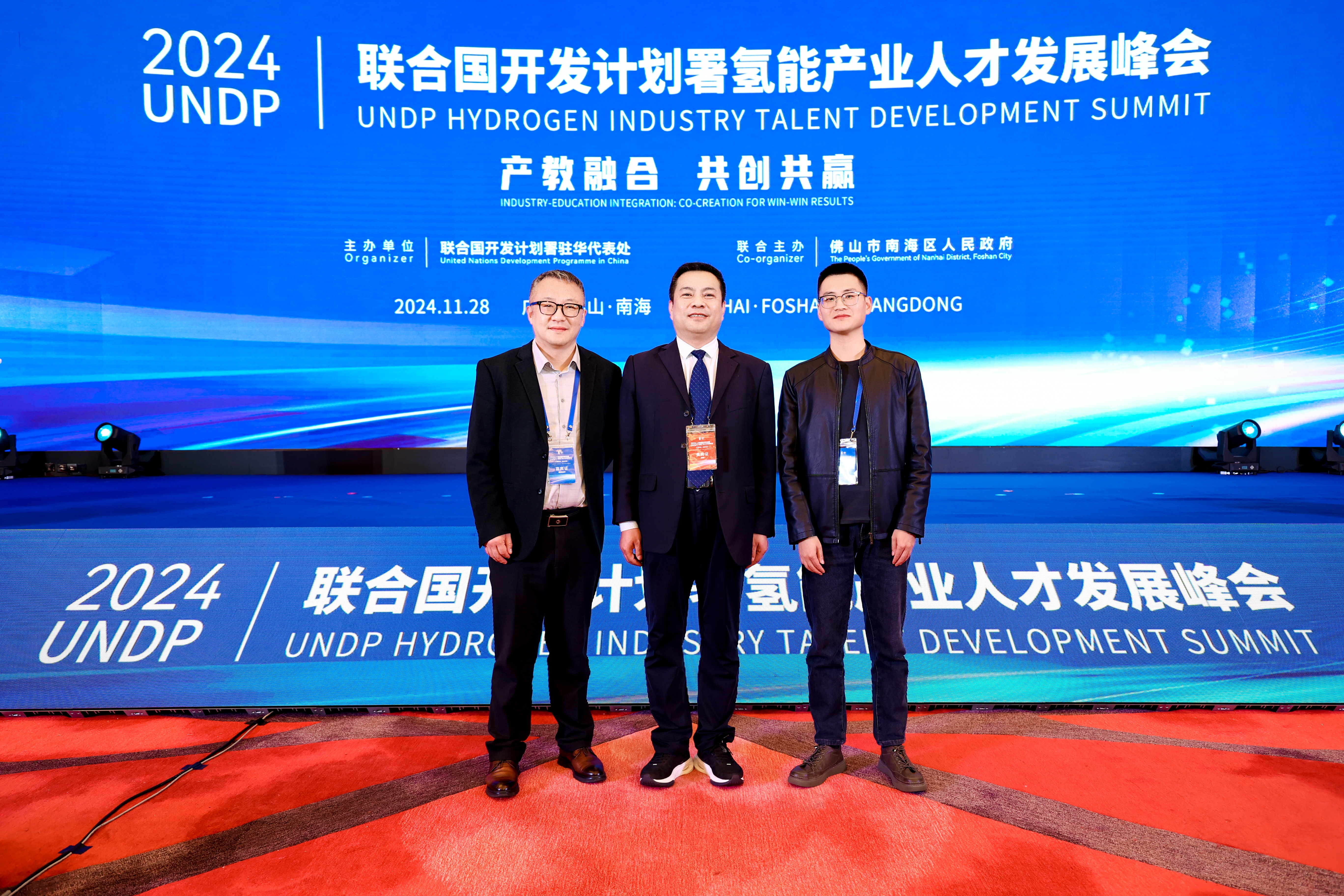 11月28日,由聯(lián)合國開發(fā)計劃署駐華代表處、佛山市南海區(qū)人民政府聯(lián)合主辦的UNDP(The United Nations Development Programme 聯(lián)合國開發(fā)計劃署)氫能產業(yè)人才發(fā)展峰會于佛山市成功舉行。本次峰會作為全國首個由國際機構主導的國際氫能產業(yè)人才會議,聚焦氫能領域高素質技能人才的培養(yǎng),推動產教深度融合,探索為產業(yè)發(fā)展提供重要技能型人才支撐路徑。我院中科低碳新能源技術學院院長黃述杰教授、王廣華博士和王續(xù)峰老師參加此次會議。