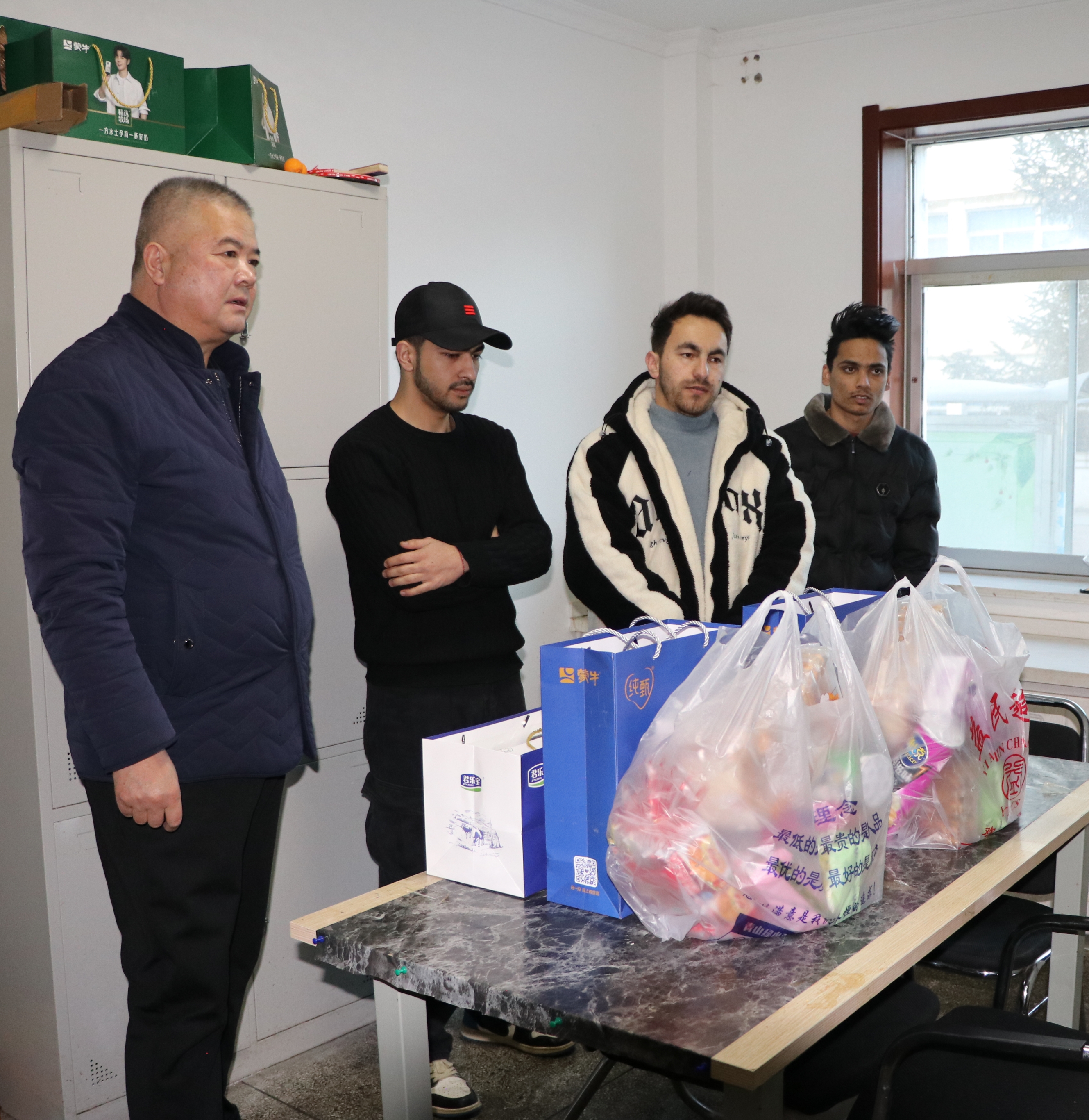 為深入了解來華留學(xué)生的學(xué)習(xí)和生活狀況,全面做好留學(xué)生的假期安全教育和服務(wù)保障工作,12月30日下午,在2025年新年來臨之際,黨委委員、副校長王守云、學(xué)生工作部部長張世亮、副部長王鵬、保衛(wèi)處副處長康興奎以及國際合作交流處全體工作人員走進(jìn)留學(xué)生公寓,給留學(xué)生們送去學(xué)校的關(guān)懷和新年的祝福。
