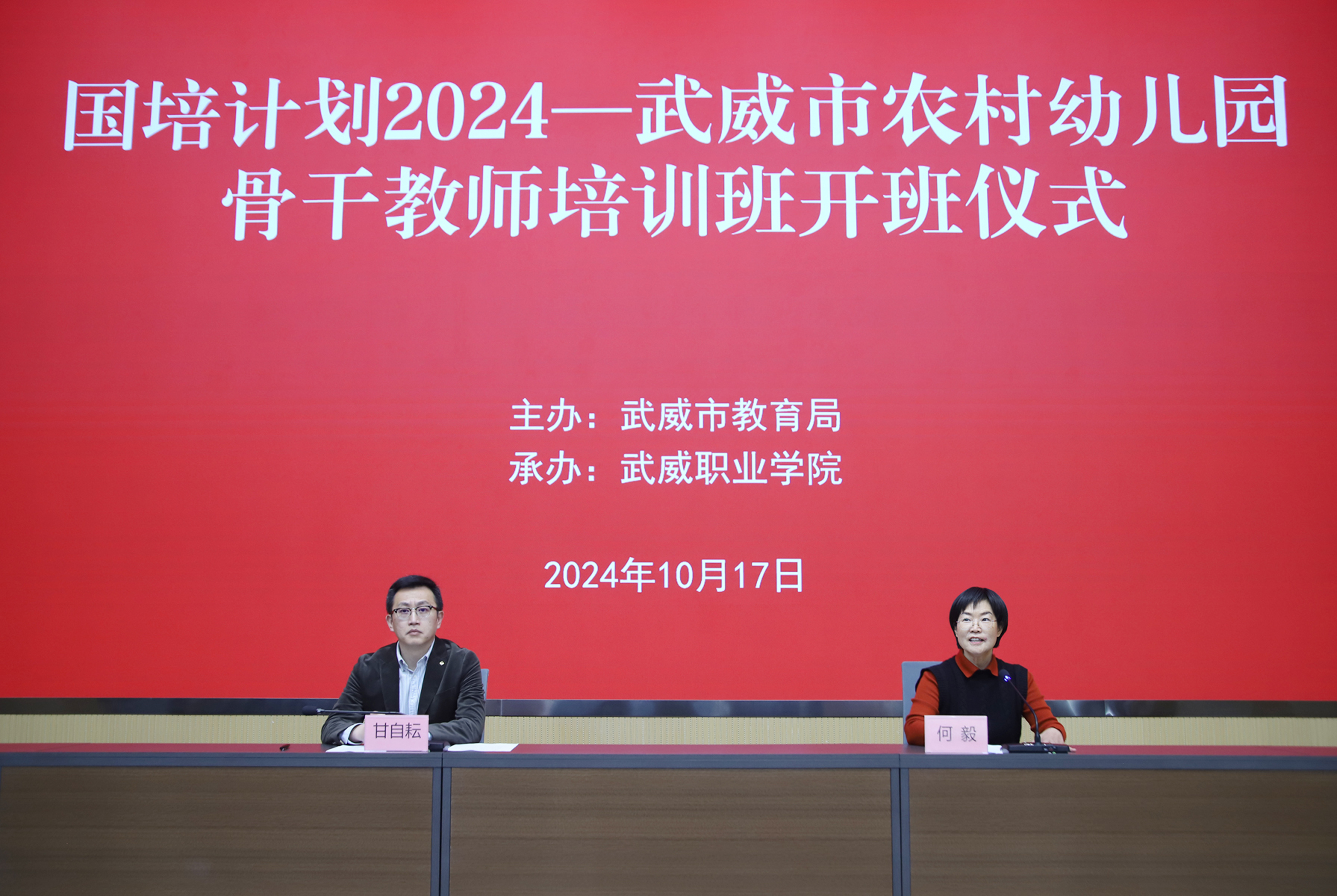 10月17日上午,由武威市教育局主辦,我校承辦的“國培計劃(2024)”—武威市農村幼兒園骨干教師培訓班在能源科技樓一樓報告廳順利開班,來自我市各農村幼兒園的80名骨干教師參加培訓。武威市教育局黨組成員、副局長甘自耘出席開班儀式。學校黨委委員、副校長何毅主持開班儀式。