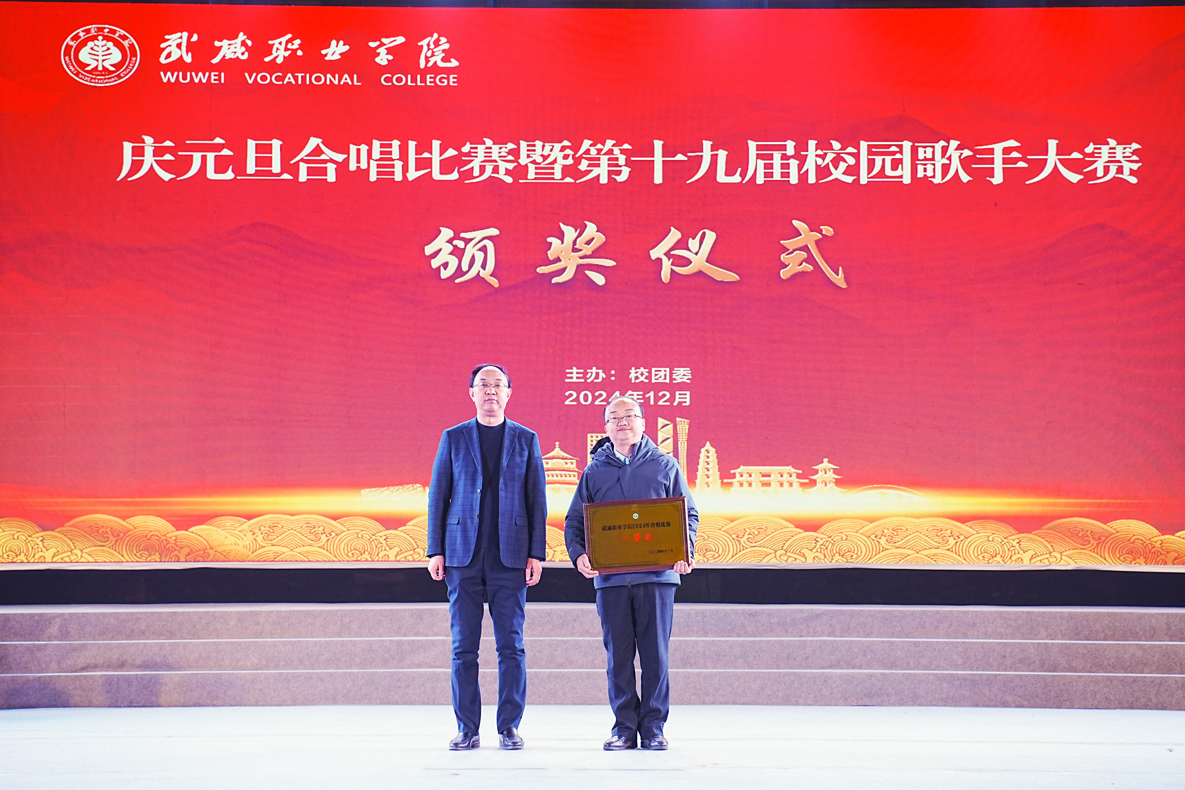歌聲獻(xiàn)禮時(shí)代,青春唱響未來(lái)。12月26日晚,學(xué)?!皯c元旦”合唱比賽暨第十九屆校園歌手大賽在體育館成功舉辦。學(xué)校黨委書記王宏出席活動(dòng)并為獲獎(jiǎng)集體和個(gè)人頒獎(jiǎng),黨委委員、副校長(zhǎng)王守云出席活動(dòng),各二級(jí)學(xué)院和相關(guān)部門負(fù)責(zé)人與2000余名師生現(xiàn)場(chǎng)觀看了比賽。