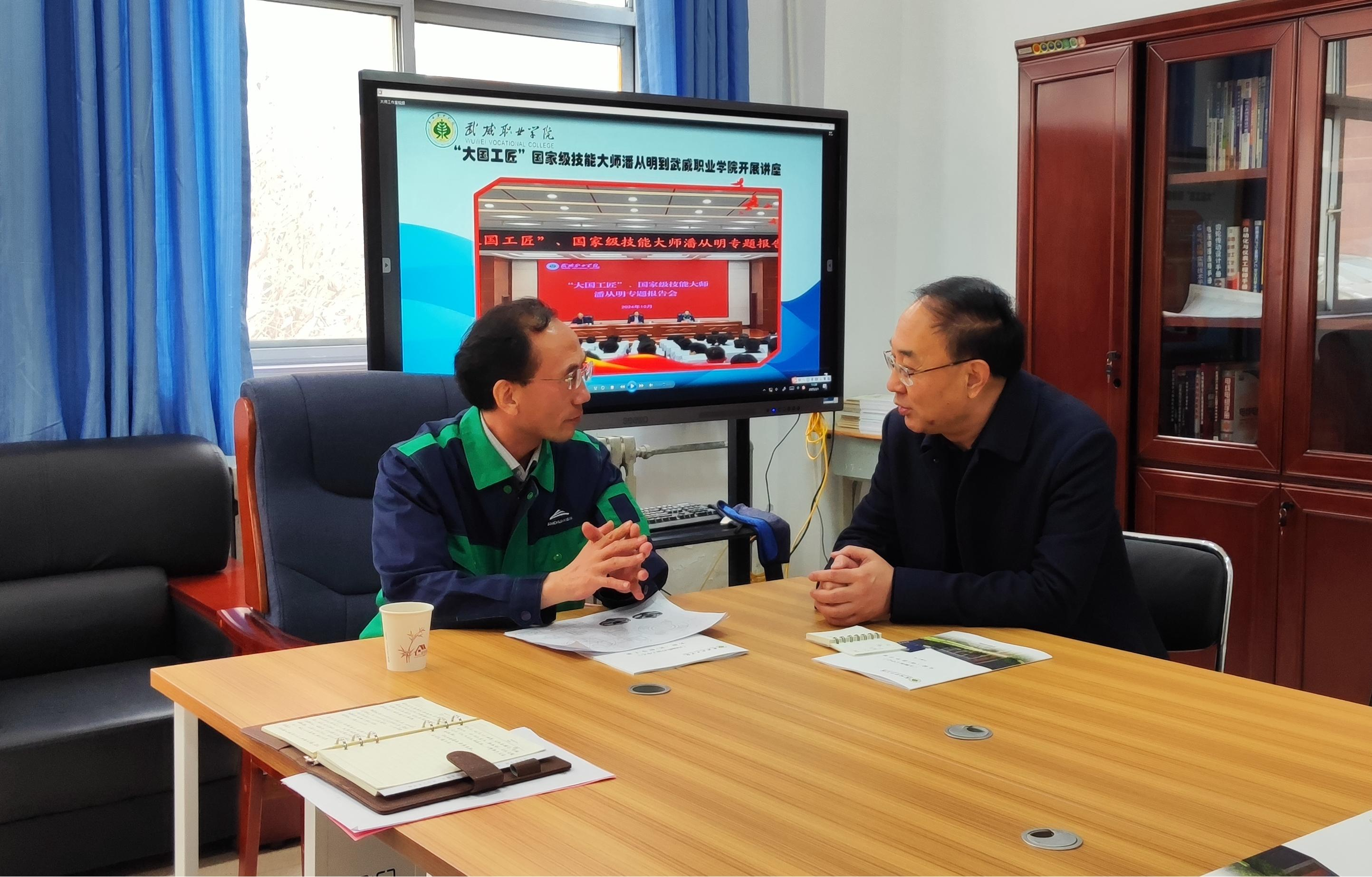 講座后,潘從明來(lái)到學(xué)校智能制造實(shí)訓(xùn)中心進(jìn)行現(xiàn)場(chǎng)指導(dǎo),認(rèn)真聽取了實(shí)訓(xùn)中心的實(shí)訓(xùn)場(chǎng)地、實(shí)訓(xùn)裝備、實(shí)訓(xùn)方式等情況,并與校領(lǐng)導(dǎo)及師生代表進(jìn)行了深入交流。他勉勵(lì)師生傳承工匠精神,積極投身實(shí)踐,提高動(dòng)手能力,在實(shí)踐中快速成長(zhǎng)為高素質(zhì)技術(shù)技能型人才。