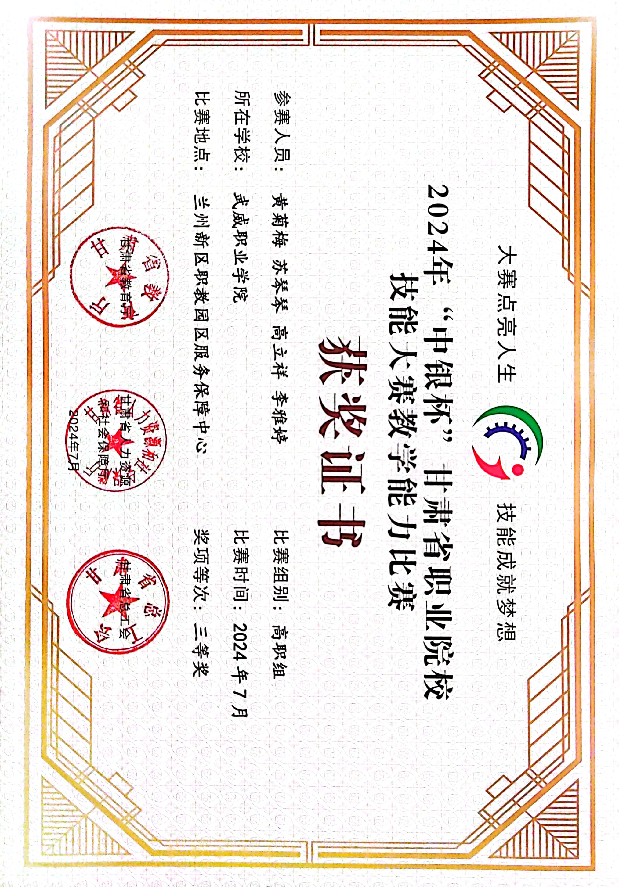 2024年甘肅省職業(yè)院校技能大賽教學能力比賽獲獎情況