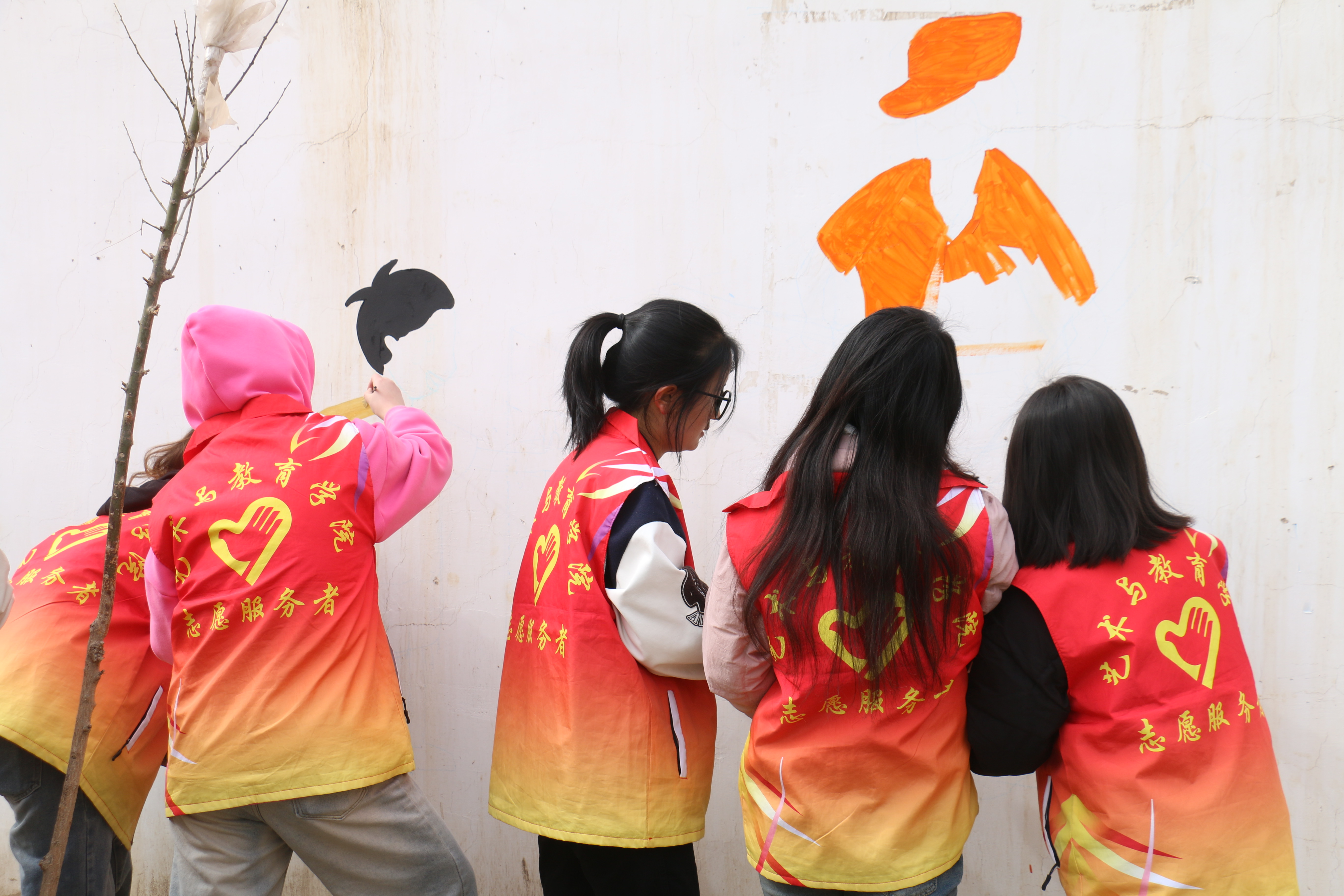 在涼州區(qū)富鑫源社區(qū),學(xué)前教育專業(yè)20余名學(xué)生化身“社區(qū)美育師”,與甘肅十二元素傳媒有限公司設(shè)計(jì)師共同完成了“鄰里和諧”主題墻繪。學(xué)生通過墻繪師的專業(yè)輔導(dǎo),結(jié)合幼兒教育知識設(shè)計(jì)卡通圖案,將廢棄墻面變?yōu)椤皶v故事”的文化長廊。23級數(shù)字媒體班王格爾桑表示:從主題設(shè)計(jì)到落地實(shí)踐,我感受到藝術(shù)教育需要溫度和共情。
