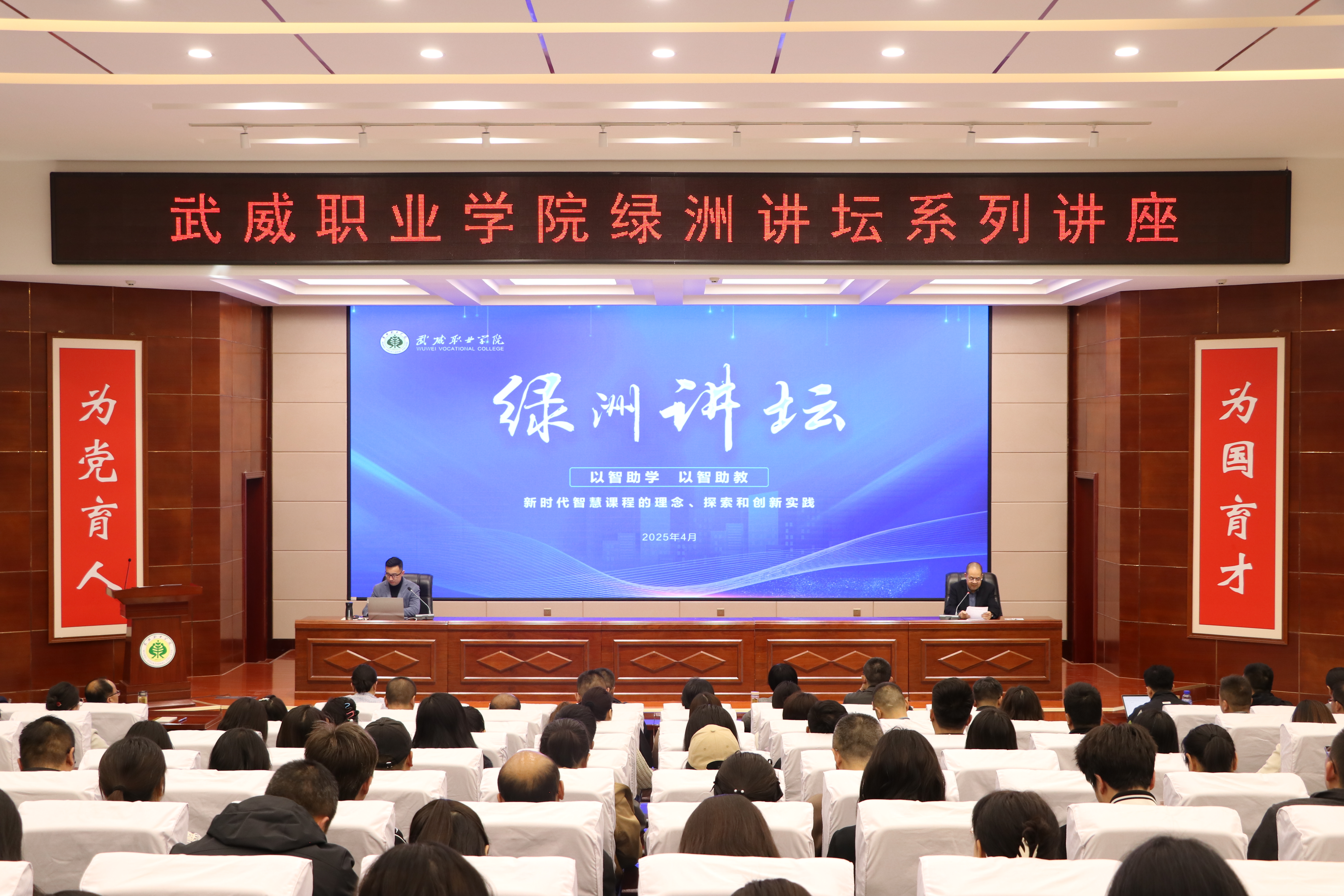 4月27日,學(xué)校特邀福建農(nóng)林大學(xué)碩士研究生導(dǎo)師劉學(xué)莘教授,在菁英廳做了“以智助學(xué) 以智助教——新時(shí)代智慧課程的理念、探索和創(chuàng)新實(shí)踐”的主題講座。學(xué)校領(lǐng)導(dǎo)、中層管理干部及教師代表共計(jì)220余人到場(chǎng)聆聽。黨委副書記翟存祥主持講座。