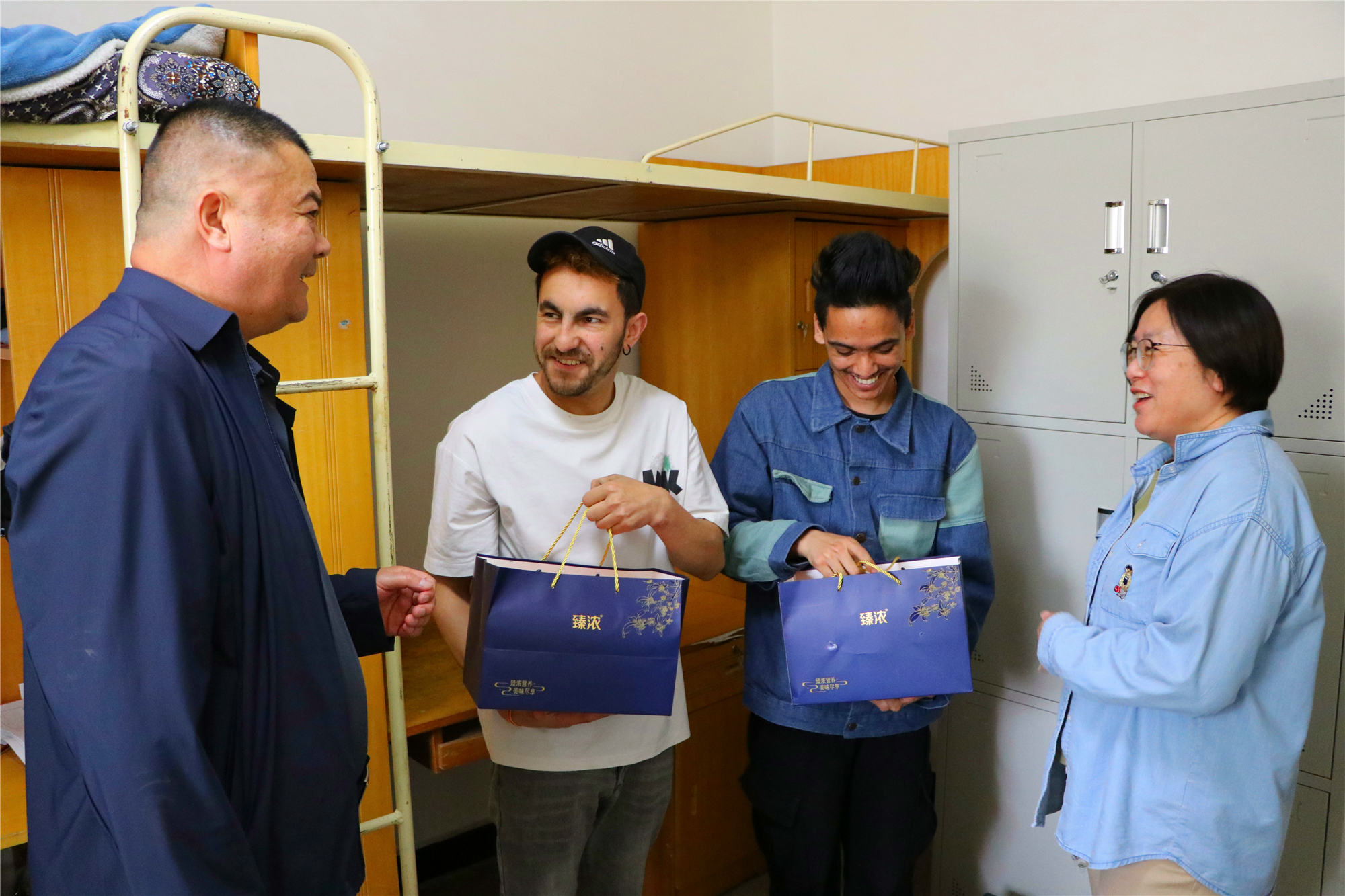 慰問現(xiàn)場,校領導為留學生贈送粽子等節(jié)日慰問品,并介紹了端午節(jié)的歷史和風俗習慣。在親切交談中詢問留學生日常生活、專業(yè)學習、課程實訓等情況,并鼓勵他們刻苦學習,練就過硬本領,在學好專業(yè)知識的同時,多了解和學習中國傳統(tǒng)文化,同時還對端午假期安全作了提醒和要求,留學生們對學校的慰問和關心表示感謝。