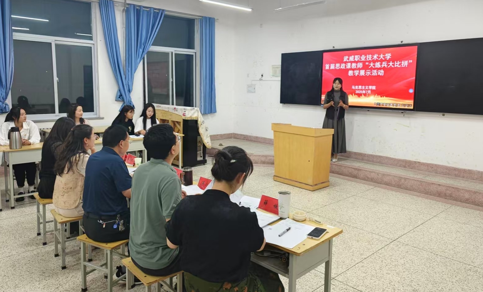 7月3日,武威職業(yè)技術大學首屆思政課教師“大練兵大比拼”教學展示活動在勵勤樓206教室成功舉辦。活動旨在推動新時代思想政治理論課高質量發(fā)展,提升思政課教師教學水平,打造高素質思政課教師隊伍。
