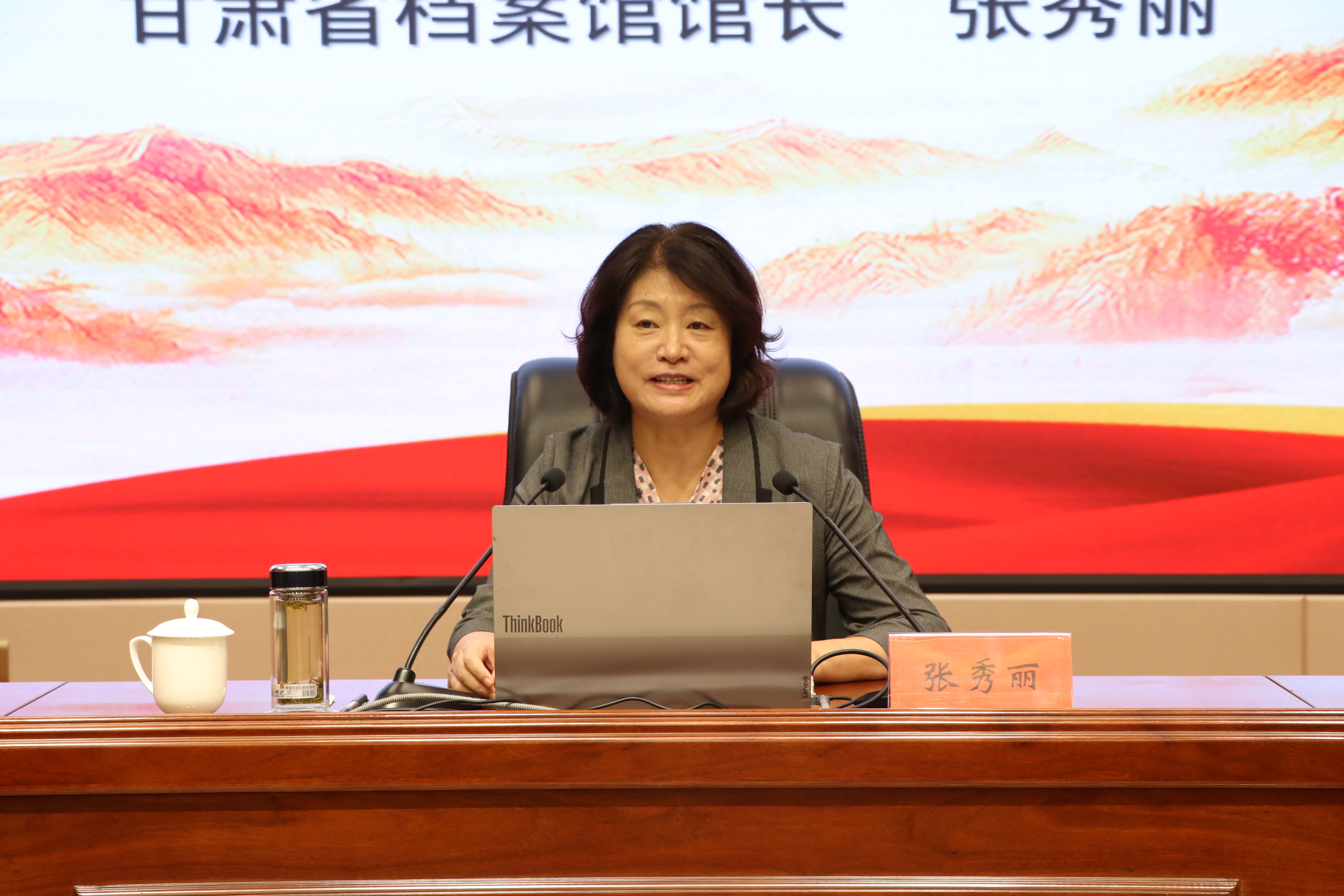 張秀麗結(jié)合自身從事檔案管理和文化研究的豐富經(jīng)驗(yàn),從檔案“存史、資政、育人”根本任務(wù)出發(fā),通過大量珍貴檔案文獻(xiàn)和歷史案例,系統(tǒng)闡述了檔案在記錄民族苦難輝煌、服務(wù)當(dāng)代治國理政、培育時(shí)代新人中的重要作用。報(bào)告中,她以館藏漢代簡牘、革命烈士叢德滋00001號烈屬證、民勤治沙檔案、甘肅地震檔案等一批具有歷史代表性和地域特色的檔案為載體,帶領(lǐng)師生穿越時(shí)空,感受中華民族生生不息的精神力量,深刻解讀“勿忘昨天的苦難輝煌,無愧今天的使命擔(dān)當(dāng),不負(fù)明天的偉大夢想”的時(shí)代內(nèi)涵。