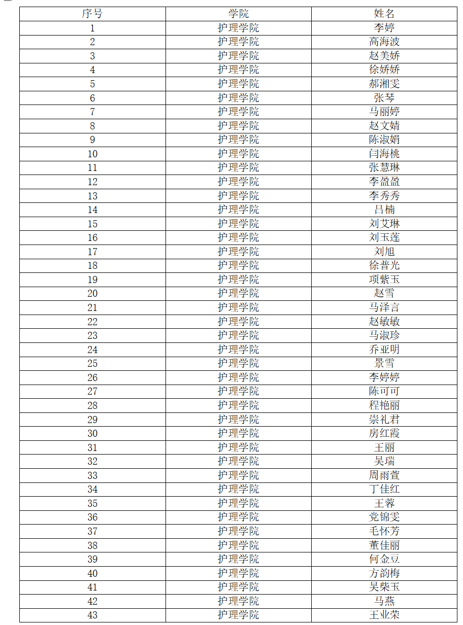 護(hù)理學(xué)院關(guān)于2025年國家助學(xué)金獲評人選的公示