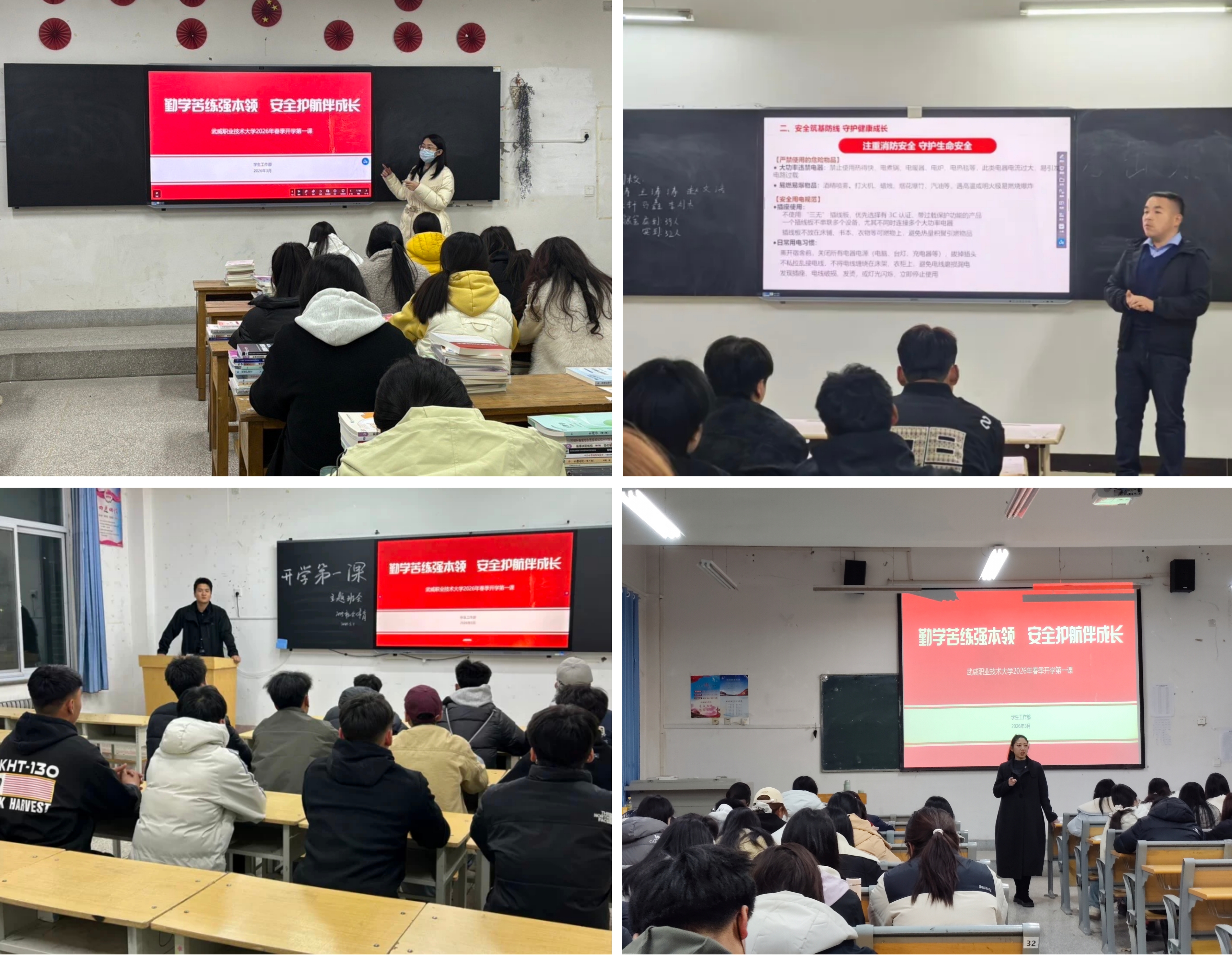 春潮涌動(dòng)處,揚(yáng)帆奮進(jìn)時(shí)!為深入落實(shí)立德樹人根本任務(wù),引導(dǎo)學(xué)子以昂揚(yáng)姿態(tài)開啟新學(xué)期,3月1日,武威職業(yè)技術(shù)大學(xué)以班級(jí)主題班會(huì)為載體,圍繞“勤學(xué)苦練強(qiáng)本領(lǐng),安全護(hù)航伴成長(zhǎng)”為主題,扎實(shí)開展2026年春季“開學(xué)第一課”活動(dòng),為全體學(xué)子送上兼具思想深度、實(shí)用價(jià)值與職教特色的新學(xué)期“啟航禮”。