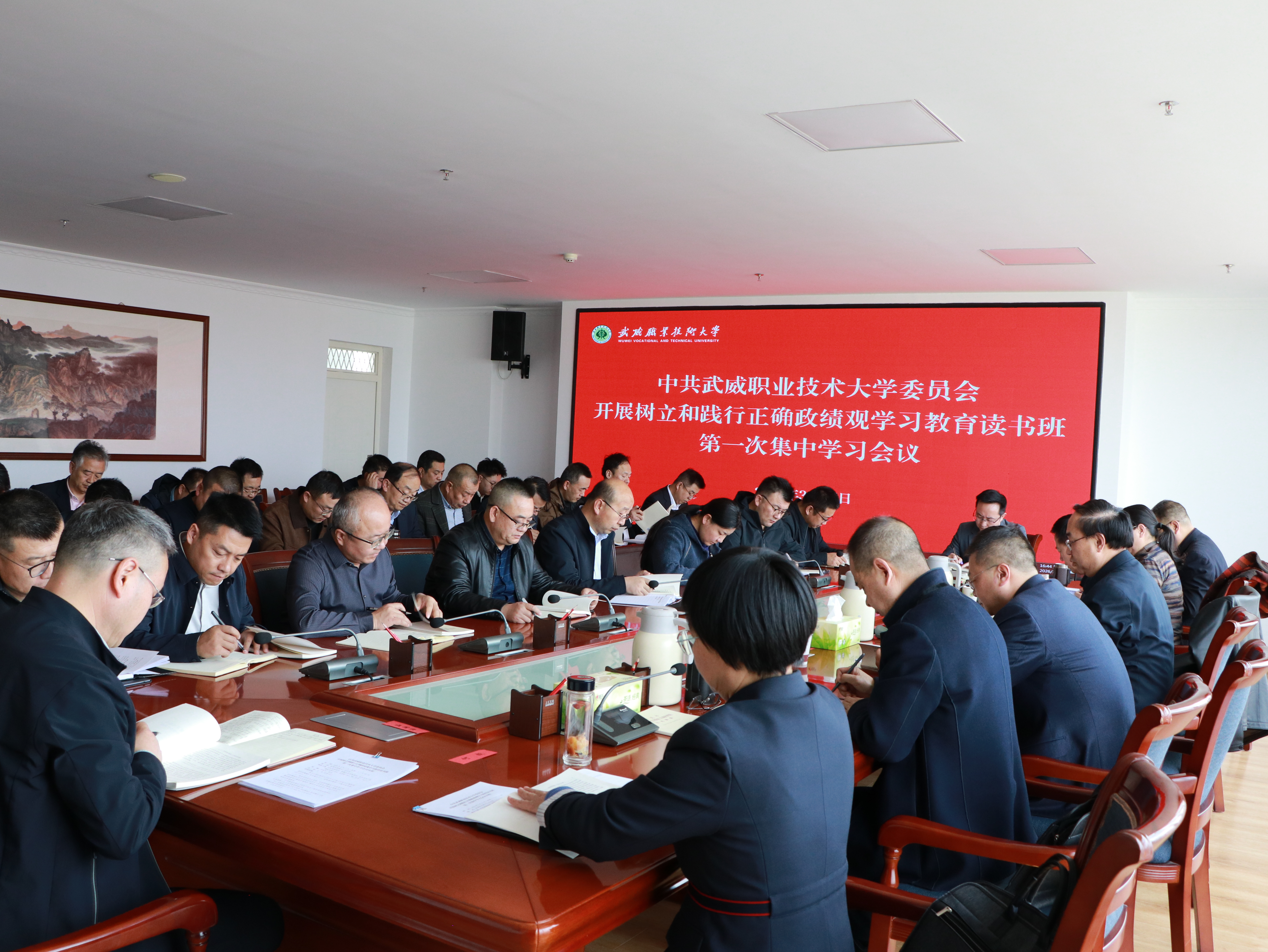 3月17日,學(xué)校開展樹立和踐行正確政績觀學(xué)習(xí)教育讀書班第一次集中學(xué)習(xí)。黨委書記王宏主持會(huì)議。校長李海軍列席,學(xué)校領(lǐng)導(dǎo)班子成員、附屬中醫(yī)醫(yī)院黨委、各基層黨組織書記、各部門負(fù)責(zé)人參加會(huì)議。