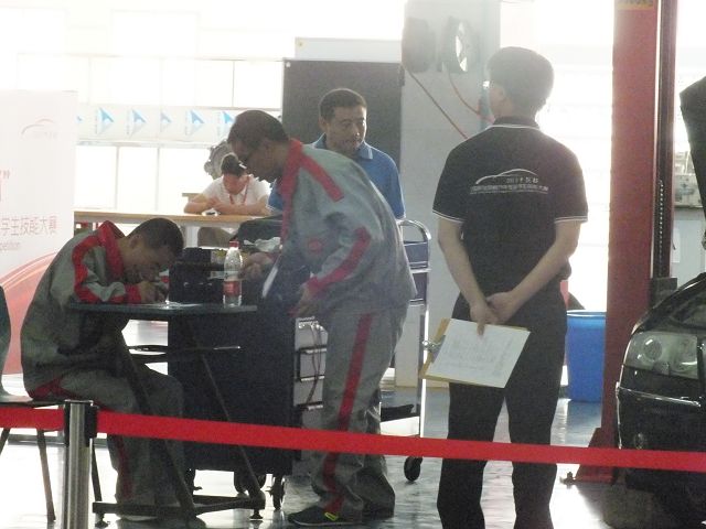 學(xué)院自接到《關(guān)于舉辦第三屆“中銳杯”全國職業(yè)院校汽車(制造服務(wù)類)專業(yè)學(xué)生技能大賽的通知》之后,學(xué)院領(lǐng)導(dǎo)對(duì)本次比賽高度重視,汽車工程系全體老師及學(xué)生對(duì)本次比賽更是充滿信心,汽車工程系專門召開了系部會(huì)議,組織討論了本次比賽的參賽方案,并確定了實(shí)訓(xùn)內(nèi)容、時(shí)間、地點(diǎn)和指導(dǎo)老師。經(jīng)過了各班推選、測(cè)試選拔、預(yù)賽、培訓(xùn)等環(huán)節(jié),最終決定由11級(jí)汽車檢測(cè)與維修中銳班陳萬明和曹杰兩位同學(xué)參加本次大賽。本次技能大賽分預(yù)選賽和決賽兩個(gè)賽程,預(yù)選賽采用遠(yuǎn)程視頻預(yù)選,經(jīng)過遠(yuǎn)程視頻預(yù)選賽的層層考核和選拔,我院參賽隊(duì)順利進(jìn)入決賽名單。1012日汽車工程系王鐸云和劉煒山兩位老師帶領(lǐng)參賽隊(duì),赴江西南昌參加決賽。在決賽中,經(jīng)過激烈角逐,我院兩位參賽選手在全國36支高職組隊(duì)伍中脫穎而出,獲得了團(tuán)體三等獎(jiǎng)的優(yōu)異成績。