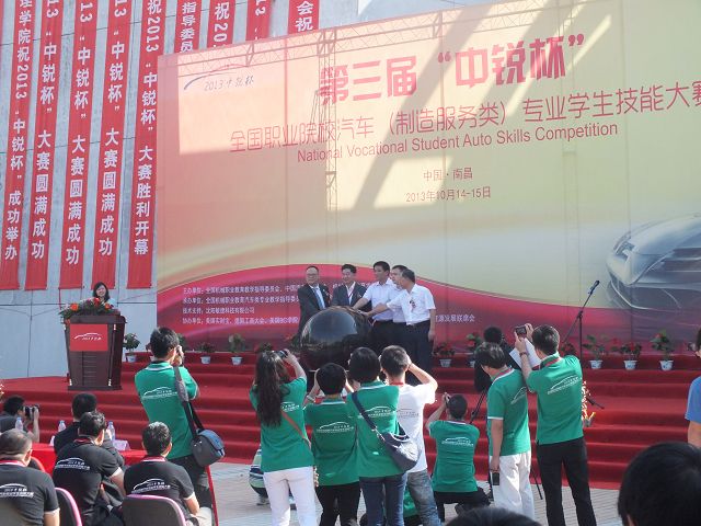2013年101415日,第三屆“中銳杯”全國職業(yè)院校汽車(制造服務(wù)類)專業(yè)學(xué)生技能大賽”總決賽在江西南昌舉行。全國近百所院校三百多名學(xué)生參加了此次大賽。本次大賽由全國機(jī)械職業(yè)教育教學(xué)指導(dǎo)委員會(huì)、中國汽車流通協(xié)會(huì)、機(jī)械工業(yè)教育發(fā)展中心共同主辦,全國機(jī)械職業(yè)教育汽車類專業(yè)教學(xué)指導(dǎo)委員會(huì)、江西現(xiàn)代職業(yè)技術(shù)學(xué)院承辦。本次大賽裁判和評(píng)委均由汽車行業(yè)的各大代表以及資深企業(yè)營銷專家擔(dān)任,因此評(píng)選也將更加注重實(shí)踐性和專業(yè)性。