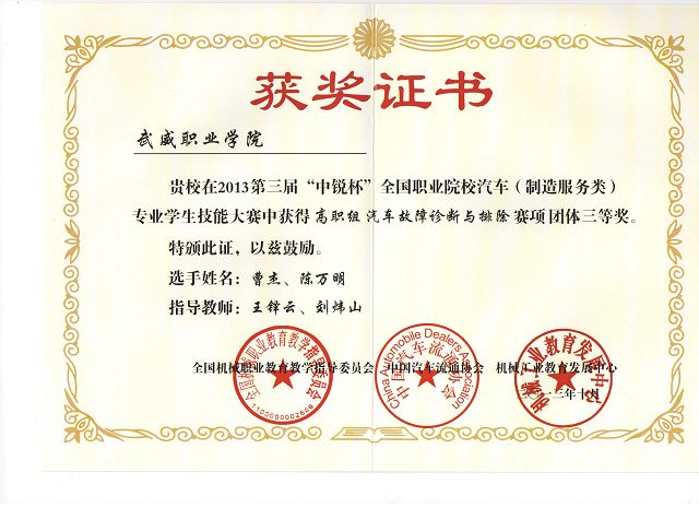 我院學(xué)生在第三屆“中銳杯”全國職業(yè)院校汽車專業(yè)學(xué)生技能大賽中獲獎(jiǎng)