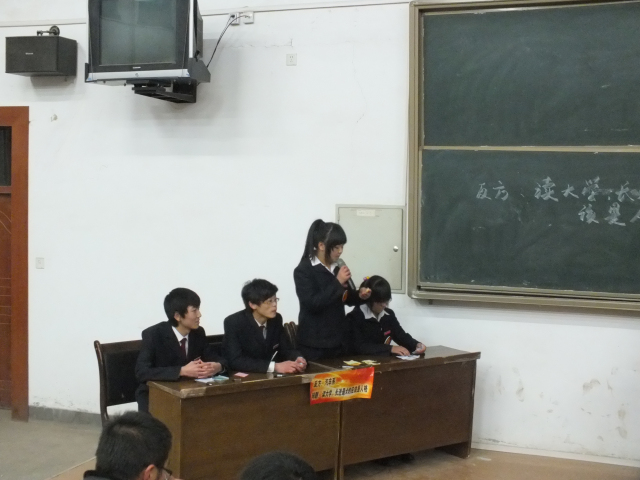 11月28日晚,我院第五屆大專辯論賽復賽第二場比賽在西階梯教室舉行。此次辯論賽,電信系作為正方以“讀大學生長進最大的是知識”為辯題,我系作為反方以“讀大學生長進最大的是人格”為辯題。雙方就此展開了激烈的辯論。