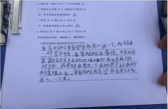 最后志愿者們坐下來相互探討提出建議:父母努力承擔(dān)孩子的教育責(zé)任。父母雖在外,但是還是應(yīng)該采取多種方式,多與孩子的溝通交流,以了解孩子的生活、學(xué)習(xí)、情感變化,比如多用電話聯(lián)系。父母是孩子的第一任老師,因此父母的教育是對孩子影響最大的,因此父母應(yīng)該多關(guān)心孩子,如果不能?;丶?,則應(yīng)該向孩子的老師說明自己的情況,了解子女的發(fā)展變化,以共同商討教育孩子的策略和方法。同時也要加強(qiáng)關(guān)愛留守兒童的各類社會宣傳。充分發(fā)揮各媒體的作用,使更多的人加入到對留守兒童教育問題的研究中來,使各界各類人士共同來探討和研究,從而使留守兒童教育問題得到切實(shí)的解決。