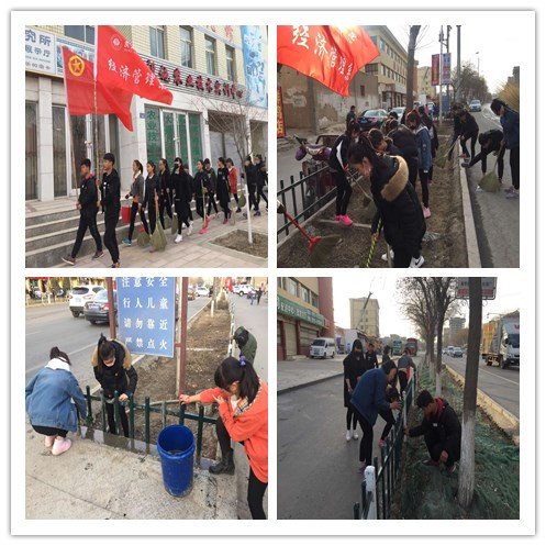 3月3日下午,我系20多名志愿者在學(xué)院團(tuán)委的組織下,共同開展了清潔學(xué)院周邊街道環(huán)境衛(wèi)生,志愿者們以“弘揚(yáng)雷鋒精神,展示青春風(fēng)采”為主旨,自帶毛巾、掃帚、拖把等清潔用具,將周邊各處宣傳的廣告一一撕掉;細(xì)心擦拭上面的灰塵;將空地上、草坪上的垃圾認(rèn)真清掃,還街道一個(gè)干凈、整潔的環(huán)境。