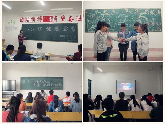 宣傳周活動(dòng)在主題簽名中拉開(kāi)序幕,系黨總支書(shū)記晏素珍在開(kāi)幕式上致辭,指出心理健康在人們的生活、工作中占有越來(lái)越重要的地位,并介紹了我系即將開(kāi)展的主題周系列活動(dòng),希望通過(guò)這些活動(dòng),給大家的心靈補(bǔ)“鈣”,讓心靈和身體更加健康,也讓“健康心理”的觀念更加深入人心。隨后,我系各班團(tuán)支部開(kāi)展了以“5•25,感恩的心”為主題召開(kāi)心理健康教育主題班會(huì);以“悅納自我、尊重他人、感恩生活、理解社會(huì)”為主題召集簽名活動(dòng);以“感恩生活”為主題創(chuàng)作主題黑板報(bào);以“傾訴一分鐘的煩惱、享受一小時(shí)的快樂(lè)”為主題的心理健康講座;以“快樂(lè)每一天、自信每一天、充實(shí)每一天”為主題的心理電影賞析,同時(shí)積極開(kāi)展輔導(dǎo)員、班主任進(jìn)宿舍活動(dòng)等。