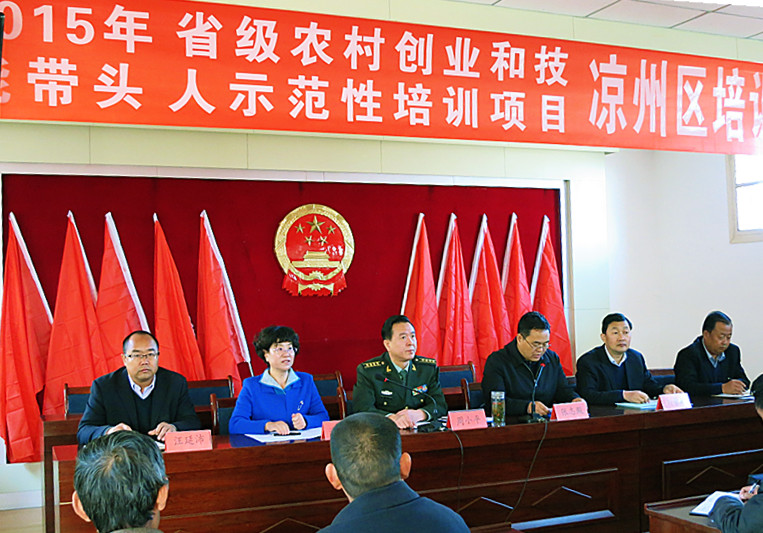 2015年“涼州區(qū)農(nóng)村創(chuàng)業(yè)和技能帶頭人省級(jí)示范培訓(xùn)班”于10月28—29日在涼州區(qū)謝河鎮(zhèn)舉行。28日上午,涼州區(qū)副區(qū)長(zhǎng)張志殿主持開(kāi)班儀式,武威市委常委、武威軍分區(qū)政委周小平做了動(dòng)員講話,學(xué)院副院長(zhǎng)潘玉華、區(qū)委組織部副部長(zhǎng)、區(qū)人社局局長(zhǎng)劉景鵬、副局長(zhǎng)沈天舉、謝河鎮(zhèn)黨委書(shū)記黨延平、鎮(zhèn)長(zhǎng)汪延沛參加了開(kāi)班儀式。