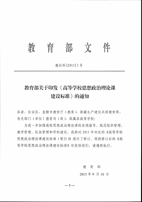 關(guān)于印發(fā)《高等學(xué)校思想政治理論課建設(shè)標準》的通知
