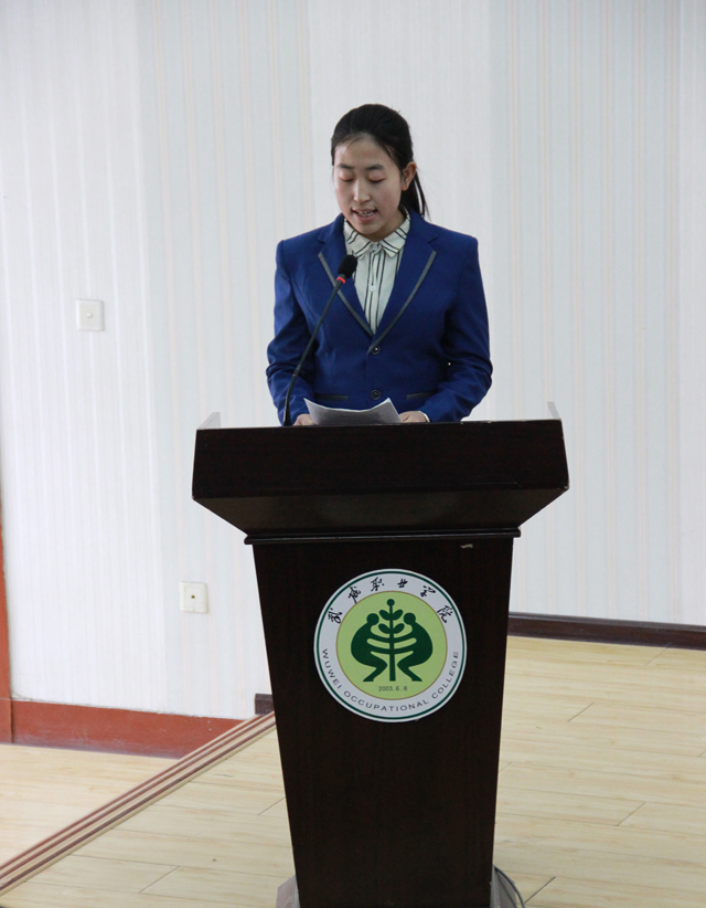 2013級王婷同學代表學生發(fā)出倡議,要胸懷大志,以崇高的理想信念提升前進的動力;要勤奮學習,以淵博的知識打好前進的根基;要呵護心靈,以更加健全的心智創(chuàng)造更好的成才之路。
