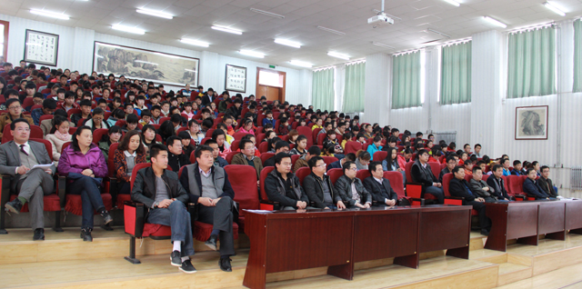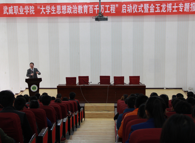 啟動儀式后,學院心理學博士、副教授金玉龍為師生就 “就業(yè)與心理健康”做專題報告。(學生處 秦娜供稿)
