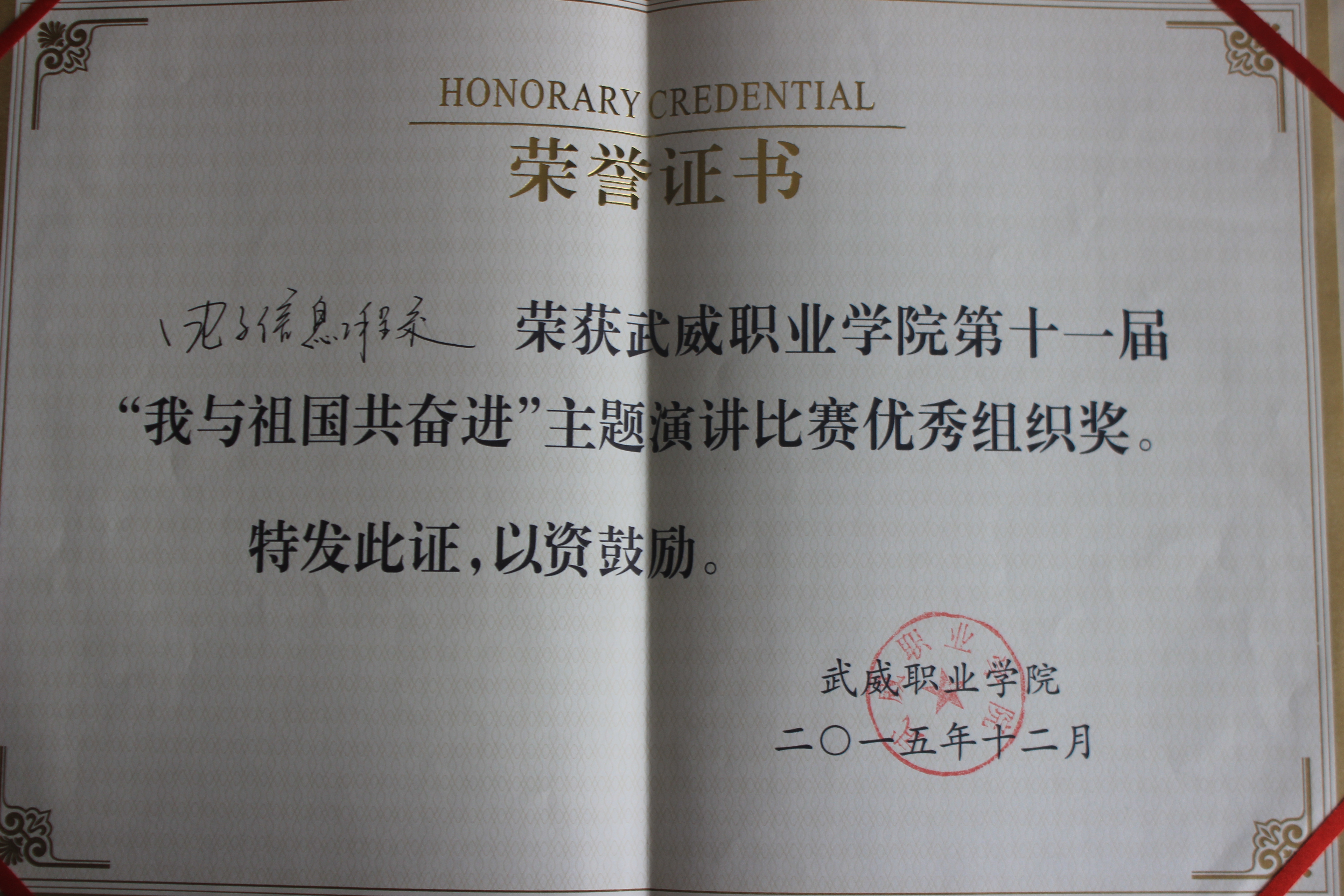 第十屆“我與祖國共奮進”主題演講比賽-優(yōu)秀組織獎