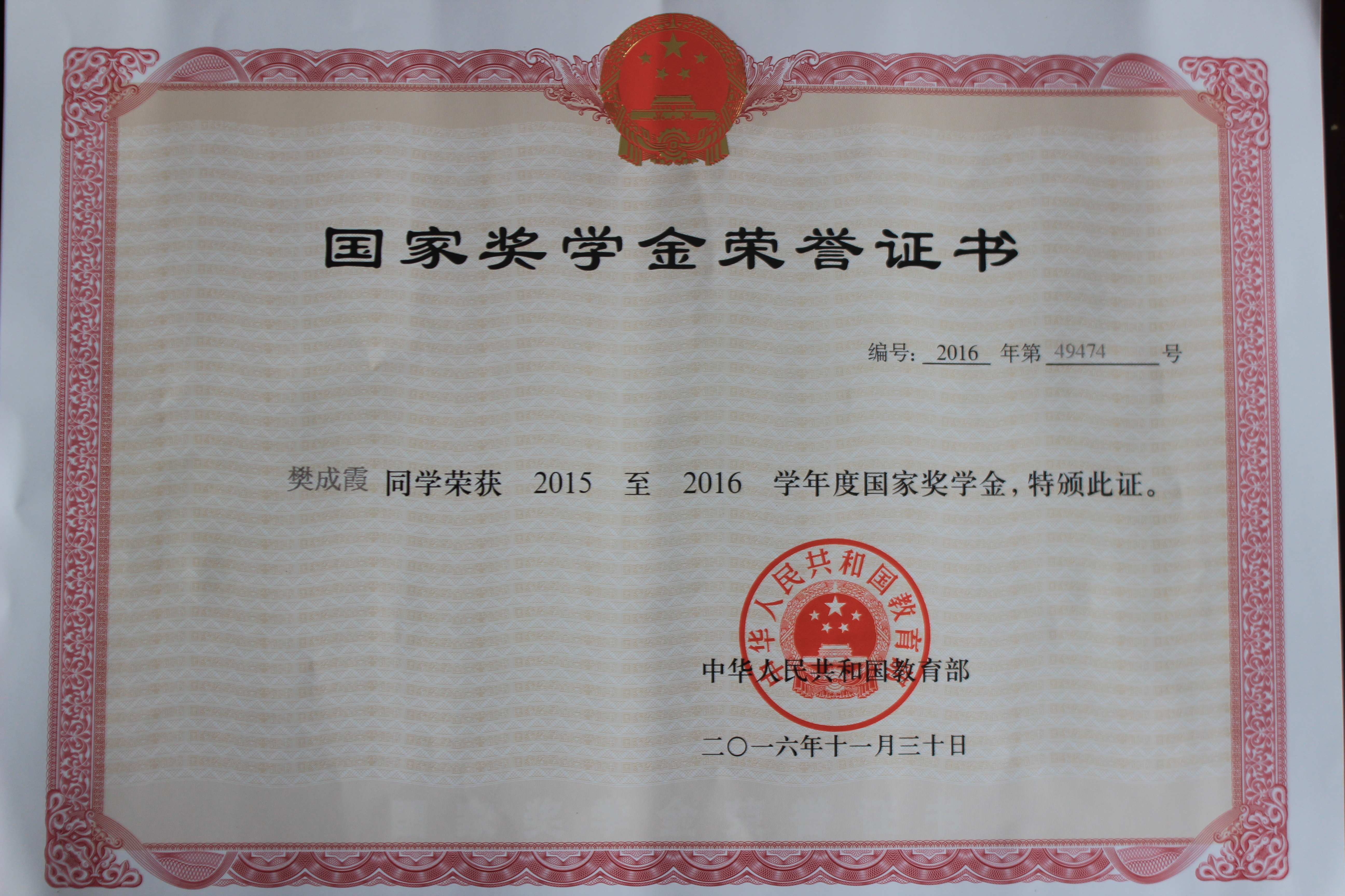 國家獎學(xué)金獲得者-樊成霞