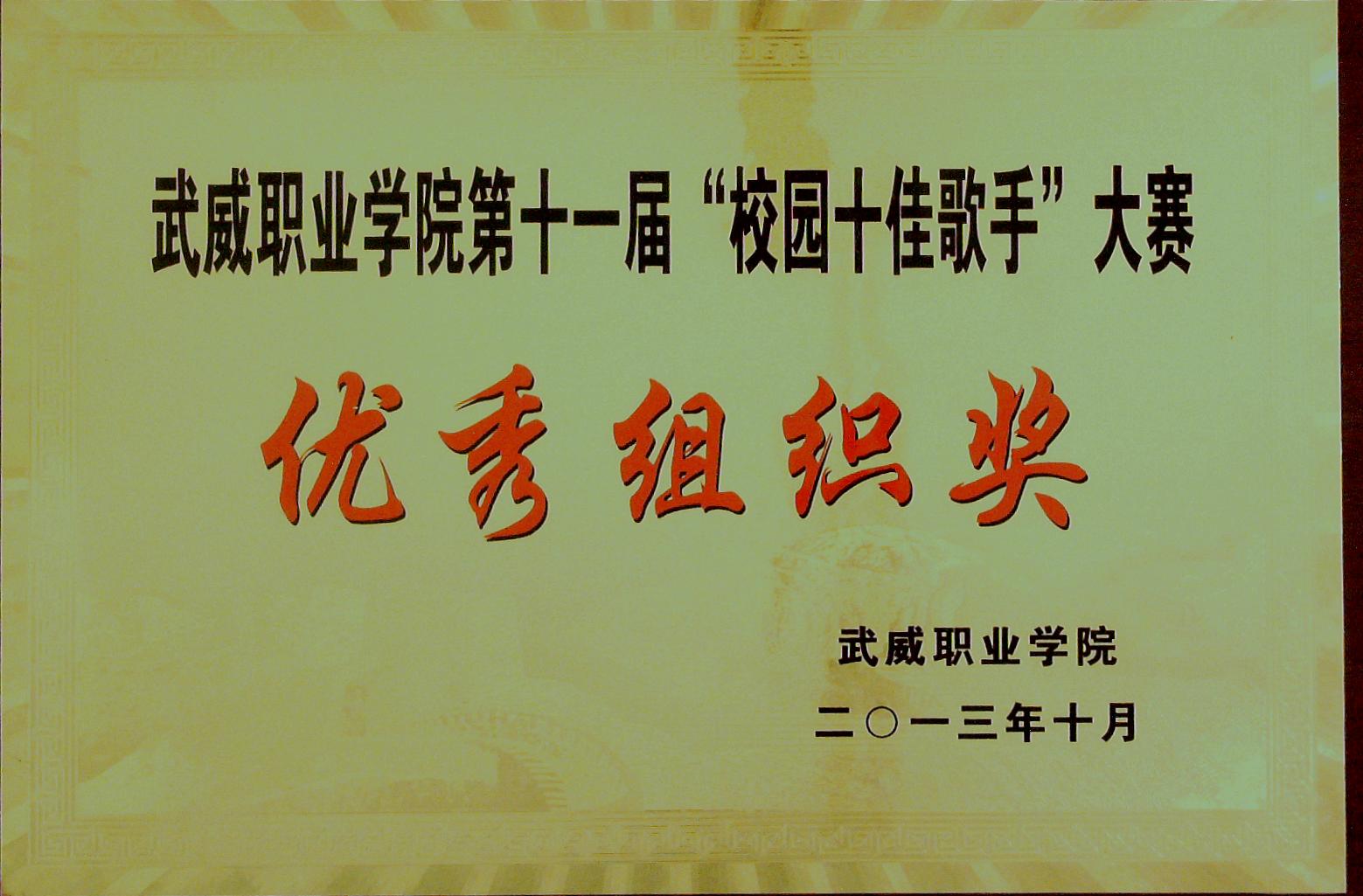 ”校園十佳歌手‘大賽優(yōu)秀組織獎(jiǎng)