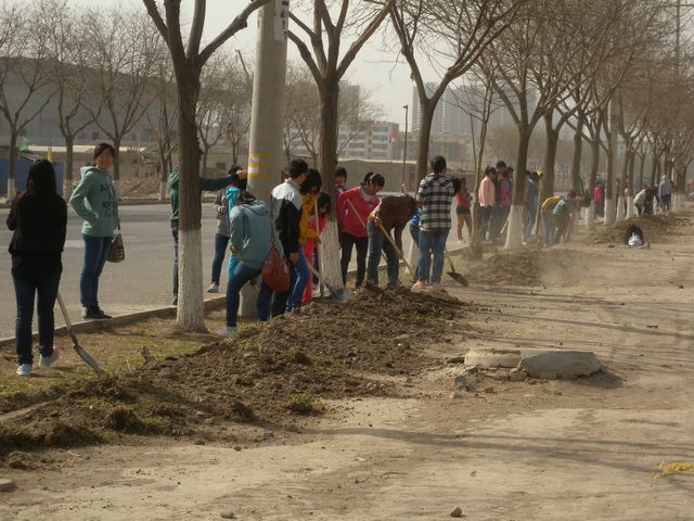 在勞動(dòng)的過(guò)程中,我系承擔(dān)了全院最重的工作任務(wù)量,盡管天氣惡劣,揚(yáng)沙彌漫,不管男生還是女生,他們都很認(rèn)真的對(duì)待這次活動(dòng),雖然植樹(shù)的那片區(qū)域土質(zhì)很硬,樹(shù)坑很難挖,很多男生因?yàn)閹兔ν跇?shù)坑手都磨出水泡來(lái)了,但是沒(méi)有一個(gè)人抱怨過(guò)。總之學(xué)生們勞動(dòng)的積極性很高,保質(zhì)保量的完成了安排給經(jīng)管系的勞動(dòng)任務(wù)。最后,經(jīng)過(guò)市綠化所驗(yàn)收合格,順利完成了我系的義務(wù)勞動(dòng)任務(wù)。
