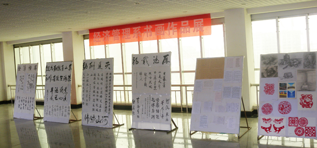 為了豐富廣大學生的課余文化生活,營造濃厚的校園文化氛圍,5月26日,經濟管理系學生書畫作品展在1號教學樓三樓大廳開展。