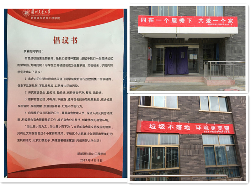 本次活動(dòng)學(xué)院從學(xué)生的生活細(xì)節(jié)入手,融入大學(xué)生自我管理、自我服務(wù)、自我教育理念。學(xué)院重視活動(dòng)開展前的宣傳工作,4月10日,學(xué)院召開了學(xué)生會(huì)干部工作會(huì)議,將學(xué)院的倡議要求傳達(dá)至每一位學(xué)生,并在學(xué)生公寓樓及教學(xué)樓公告欄粘貼了倡議書及宣傳橫幅。學(xué)院倡導(dǎo)學(xué)生自主清理宿舍內(nèi)的生活垃圾,由宿舍值日同學(xué)投放到樓下的垃圾桶里,做到不亂堆亂放垃圾,不亂潑亂倒污水,保持公寓整潔、無(wú)異味;尊重公寓管理人員、保潔人員及其勞動(dòng)成果,自覺維護(hù)宿舍及公共區(qū)域的衛(wèi)生,杜絕一切不文明行為;宿舍成員互相督促,互相提醒,生活學(xué)習(xí)雙促進(jìn),共同踐行“垃圾不落地,環(huán)境更美麗”,“同在一個(gè)屋檐下,共愛一個(gè)家”的倡議。全院學(xué)生積極響應(yīng)倡議,主動(dòng)按要求清理投放生活垃圾,公寓內(nèi)外衛(wèi)生狀況良好。學(xué)院打算將此項(xiàng)工作長(zhǎng)期抓下去,由前期的引導(dǎo)、督促、檢查,變成學(xué)生的自覺行為。