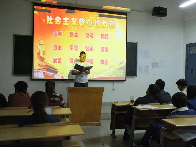 為深入學(xué)習(xí)貫徹黨的十八大精神和習(xí)近平總書記系列講話中關(guān)于大力推進(jìn)社會主義核心價值體系建設(shè)的要求,積極響應(yīng)院團(tuán)委的號召,我系于4月14日組織師生在4號教學(xué)樓313教室開展了“社會主義核心價值觀引領(lǐng)我成長”主題演講比賽。