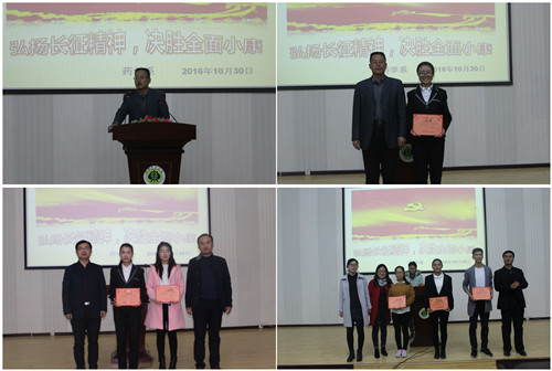 為紀念紅軍長征勝利80周年,激發(fā)師生弘揚偉大的長征精神,同時為豐富校園文化生活,展示青春正能量,藥學(xué)系團總支依據(jù)院團委的通知精神和系團學(xué)工作委員會關(guān)于增加學(xué)生課余活動的會議要求,于10月30日在正德廳組織開展了“傳承長征精神,筑我青春夢想”主題演講比賽。藥學(xué)系主任魏潤明出席了本次活動,各班班主任擔任本次比賽評委,2016級全體學(xué)生和2015級各班學(xué)生代表觀看了比賽。