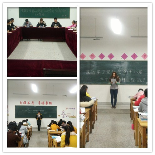 為深入學習宣傳十八屆六中全會精神,引導廣大團員青年準確把握全會的精神實質和深刻內涵,藥學系團總支結合“兩學一做”學習教育和貫徹落實武威市第四次黨代會精神,于12月7日晚,在明遠樓組織各班團支部開展了學習黨的十八屆六中全會精神主題團會。團會由各班團支部書記主持,會議傳達了十八屆六中全會精神和武威市第四次黨代會精神,領學了《中國共產黨第十八屆中央委員會第六次全體會議公報》內容。
