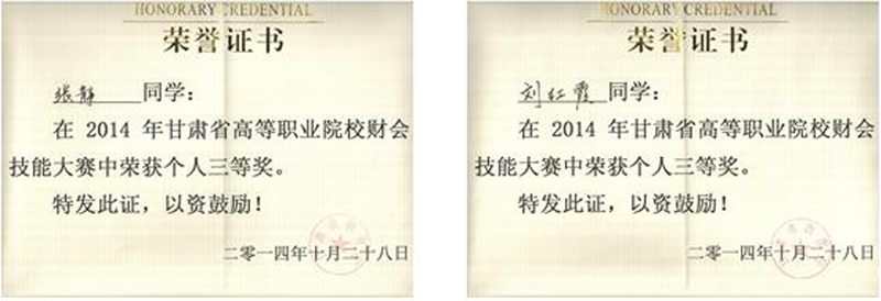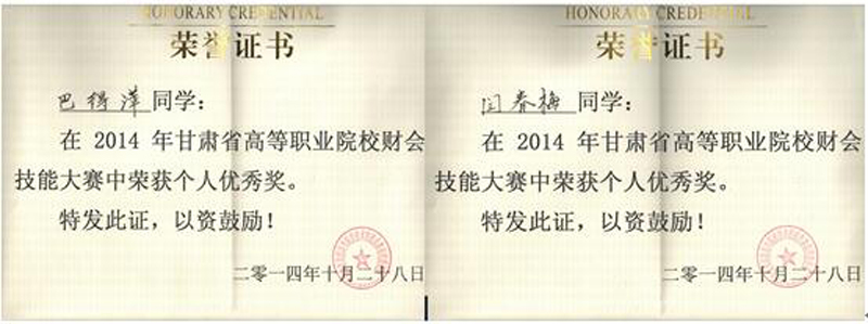 經(jīng)濟(jì)管理系12級會計電算化大專班四名學(xué)生在李惠蘭老師和賀德赟老師帶領(lǐng)下于2014年10月28日赴蘭州參加了2014年甘肅省高等職業(yè)院校財會技能大賽。