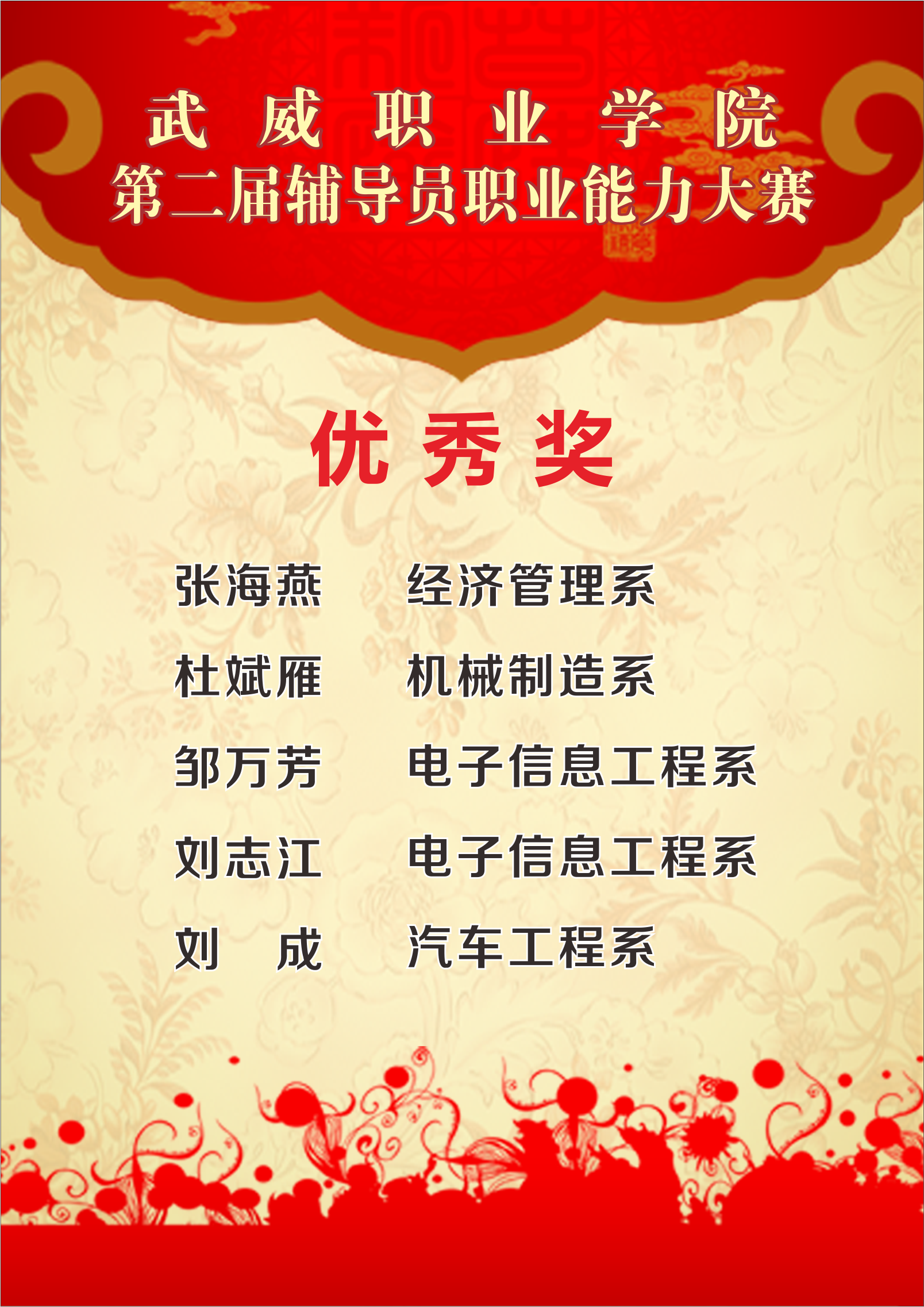 武威職業(yè)學院第二屆輔導員職業(yè)能力大賽光榮榜