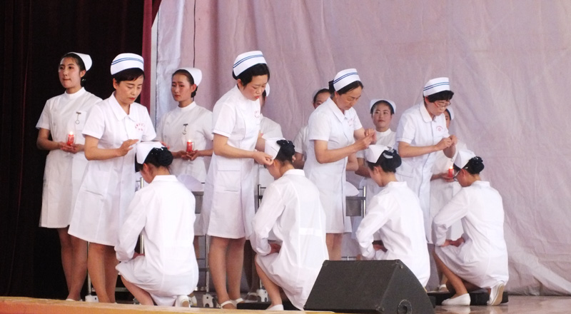 為繼承和弘揚南丁格爾精神,積極推動護理專業(yè)人才建設和職業(yè)內(nèi)涵塑造,展示我院護理專業(yè)師生風采,在第106個國際護士節(jié)來臨之際,學院于5月12日下午在大禮堂隆重舉辦了慶祝國際護士節(jié)活動,武威市衛(wèi)生計生委副主任潘玉華、學院黨委副書記趙明、紀委書記張富國、副院長王永緒、直屬附屬醫(yī)院護理部主任、相關(guān)處室領導及護理系全體師生1200余人參與了本次活動。活動包括護士授帽儀式,護理實踐技能操作表演,第四屆護理技能大賽頒獎,慶祝“5.12”護士節(jié)文藝演出等內(nèi)容。
