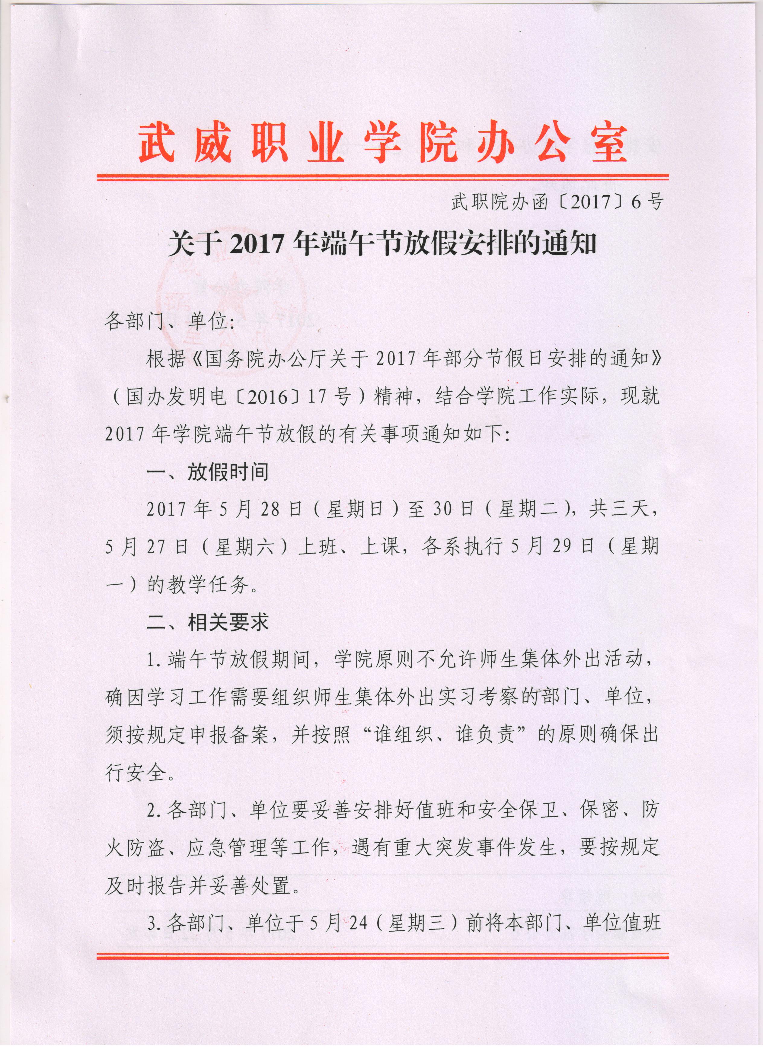 關于2017年端午節(jié)放假安排的通知