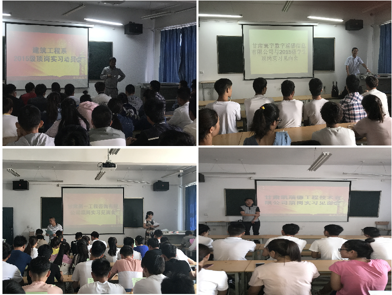 6月8日至6月16日,甘肅寰宇數(shù)字遙感信息有限公司、甘肅新一工程咨詢有限公司、國誠集團、蘭州凱瑞德工程有限公司、武威盛大集團等實習(xí)接收單位,派專人來校,舉辦企業(yè)宣講會,詳細地介紹了用人單位的管理制度、日常生活、工作崗位、薪酬待遇等,并與系上洽談了學(xué)生頂崗實習(xí)合作辦法、責(zé)任義務(wù)、安全保障、就業(yè)等涉及學(xué)生諸方面的合作細節(jié)。