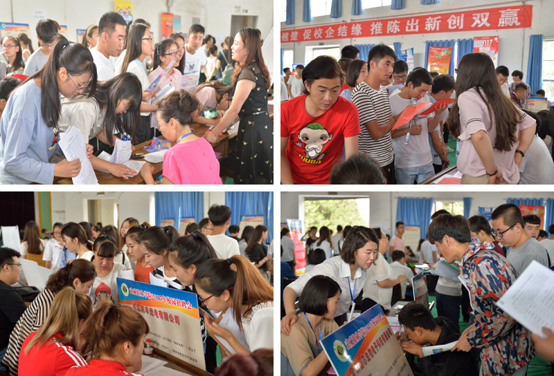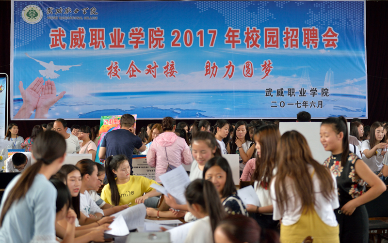 為切實做好學(xué)院畢業(yè)生就業(yè)工作,大力構(gòu)建畢業(yè)生與用人單位的交流平臺,積極為用人單位輸送應(yīng)用型人才,6月27日上午,在學(xué)院大禮堂舉行了我院2017年校園招聘會。此次招聘會參會企業(yè)共80多家,其中武威當(dāng)?shù)仄髽I(yè)12家,省內(nèi)企業(yè)33家,外地企業(yè)40多家。招聘會提供就業(yè)崗位1500多個,招聘崗位涉及了機(jī)械制造、信息工程、能源化工、醫(yī)藥衛(wèi)生、經(jīng)濟(jì)管理、學(xué)前教育、市場營銷、現(xiàn)代農(nóng)業(yè)等行業(yè),參加應(yīng)聘學(xué)生近3000人次,現(xiàn)場意向性簽約800多人。