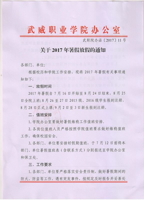 關(guān)于2017年暑假放假的通知