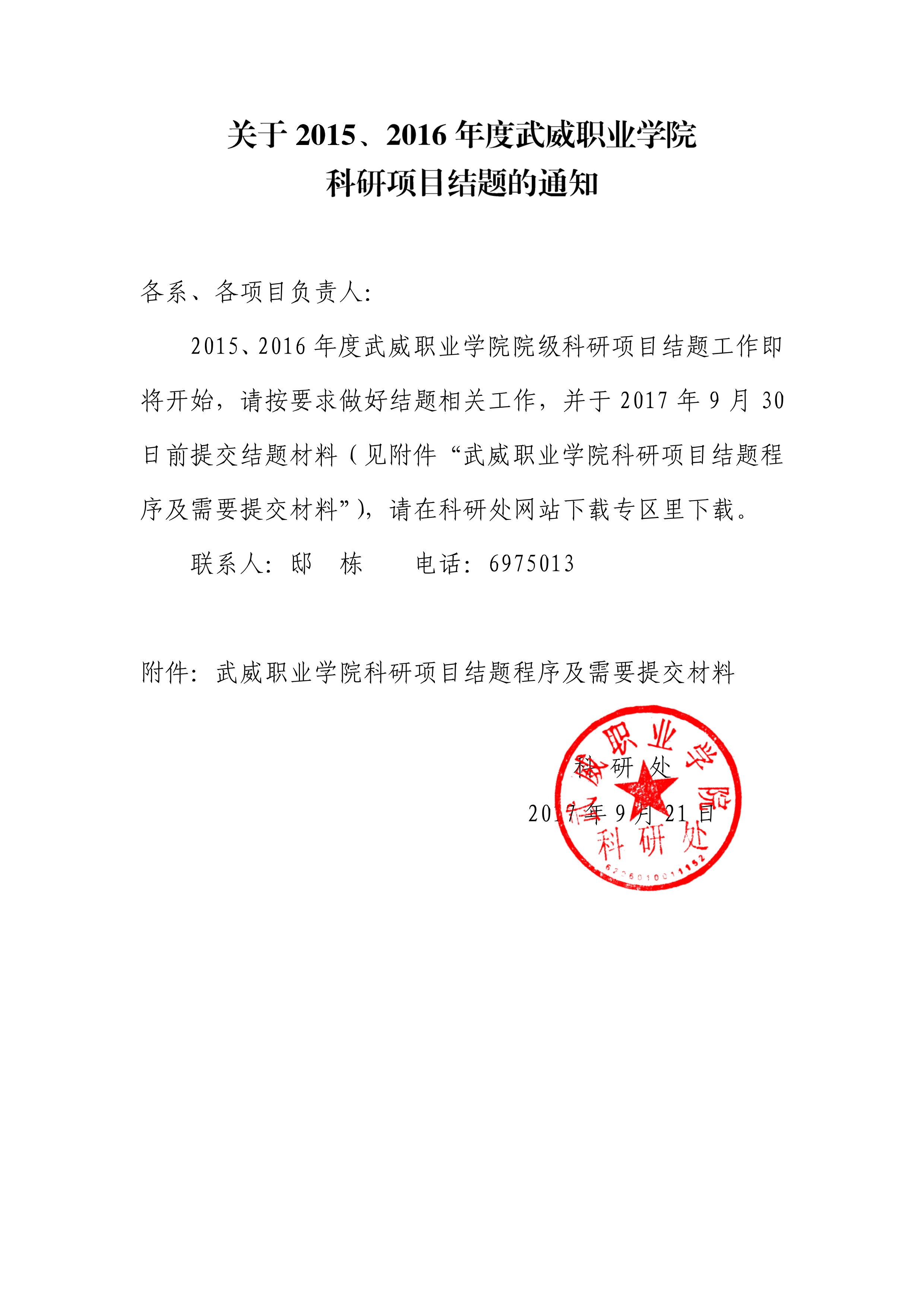 關(guān)于2015、2016年度院級科研項目結(jié)題的通知