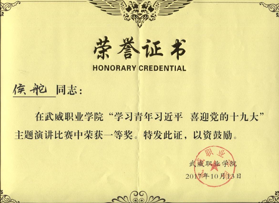 我系教師侯舵榮獲“學(xué)習(xí)青年習(xí)近平,喜迎黨的十九大”主題演講比賽一等獎